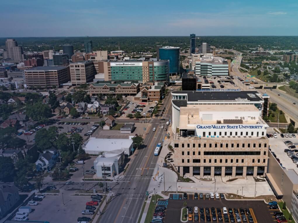 In the 1990s, with Grand Valley’s health professions programs, particularly nursing, experiencing substantial growth, university leaders were scouting possible locations for expansion on the still young Pew Grand Rapids Campus.