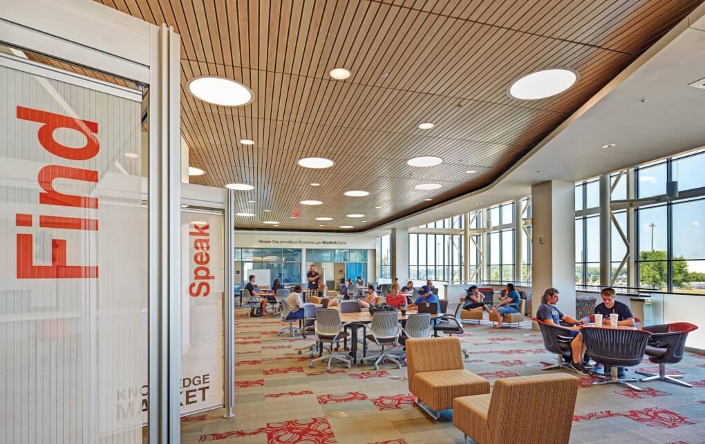 The Knowledge Market follows student study patterns and is open into the late evenings with extended hours during exam weeks. It’s a popular place. More than 6,000 students visited the markets in 2017-2018 for consultations. At the Writing Center locations, students sought 11,350 consultations, and at Speech Lab locations, 2,206 consultations.
