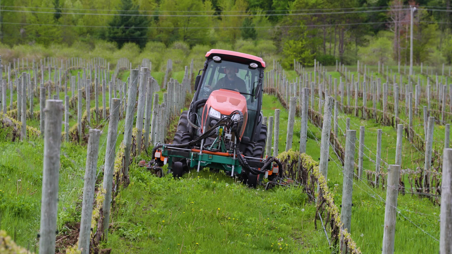 Creighton Gallagher ‘06 uses a tractor to mechanically weed their vineyard.