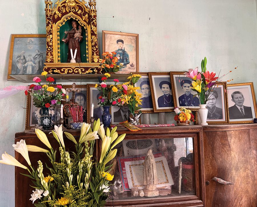 Connie and Julia Dang visited Vietnam in 2022. Pictured is an altar at Connie’s uncle’s house, where they paid respect to Connie’s grandparents by praying and lighting incense.