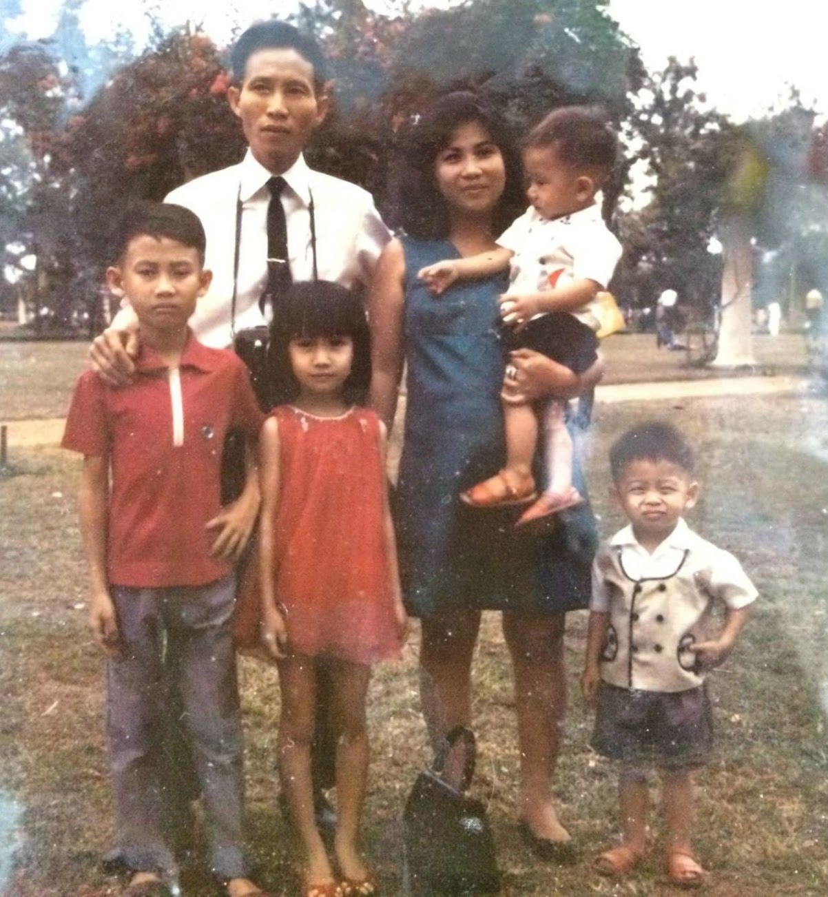 The Phams in 1970: Tham and Lien with children (left to right) Hung, Connie, Chuc and Loc.