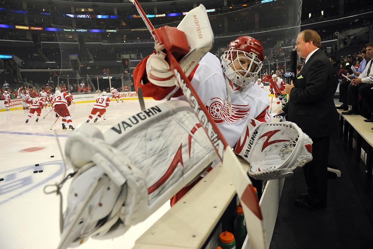 Chris Osgood sports a tie with John Keating's face on it for the broadcast.