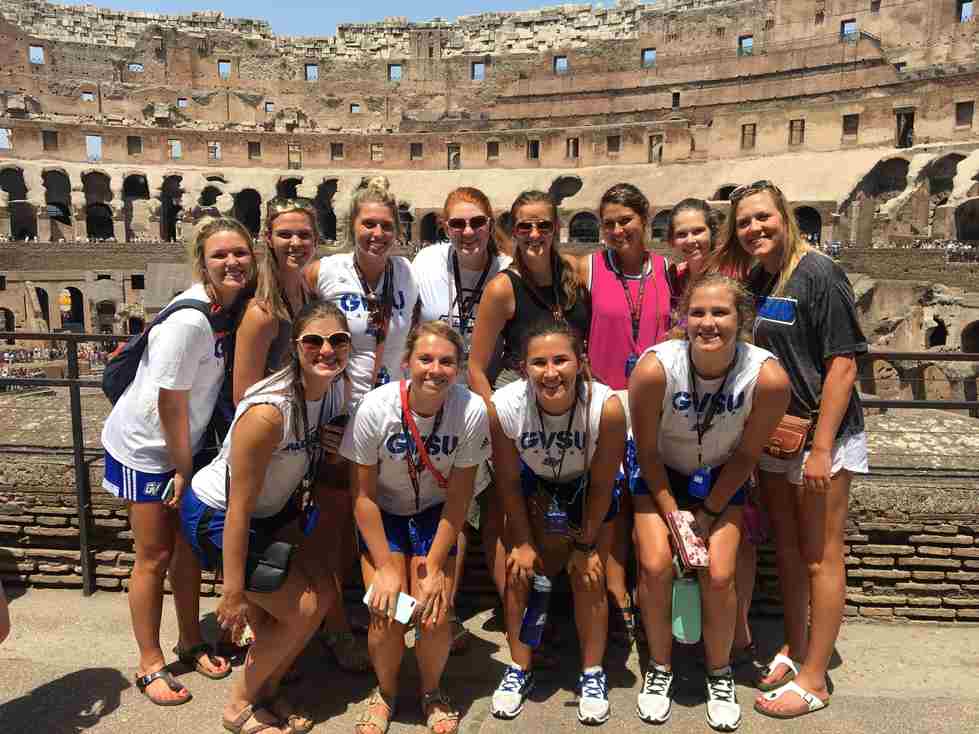 Members of the Laker volleyball team are pictured at the Colosseum in Rome during their trip to Italy and Slovenia.