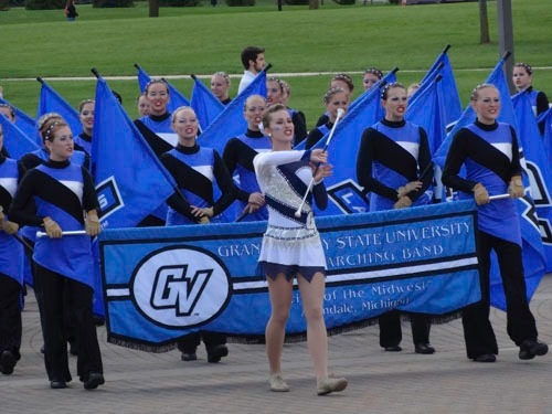 In high school Muscaro was on the majorette line for Walled Lake Northern. She auditioned for Martin on the same day she had to interview and complete an essay for a Meijer Honors College scholarship. “That was a really big Grand Valley day,” she said.