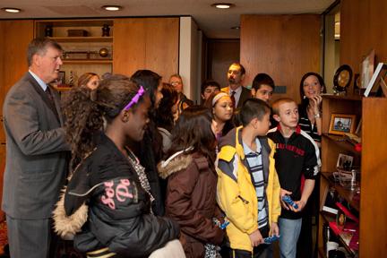 classes met with Grand Valley President Thomas J. Haas, visited the