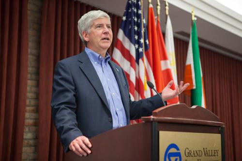 The governor spoke at a V.I.P reception at the Eberhard Center.