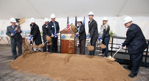 About 150 students, faculty and staff members attended the groundbreaking ceremony for the new Science Laboratory Building, April 15, on the Allendale Campus. The 151,000-square-foot, four-story building will be located on Campus Drive next to the Fieldhouse, just south of the Rec Center.