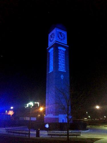 worked with Facilities Services to arrange blue lighting for the clock tower.