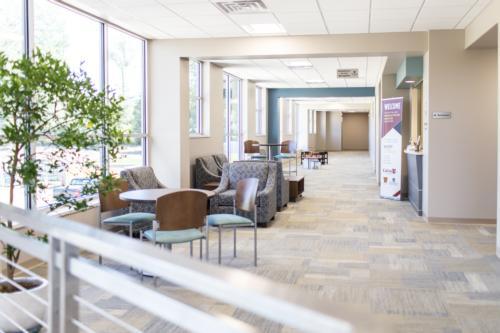 The space includes a waiting area, a group therapy room, seven clinical rooms, two soundproof audiology booths and a physical therapy gym, complete with a treadmill, hand bike, rock climbing wall, therapeutic swing and other donated equipment.