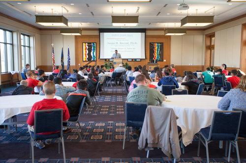 Jesse Bernal, vice president for Inclusion and Equity at Grand Valley, was the keynote speaker. He shared about his educational journey being the first in his family to attend college. He told the students to follow their dreams and to expect challenges along the way.