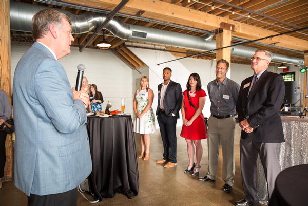More than 150 Grand Valley alumni gathered in Grand Rapids June 23 to celebrate President Thomas J. Haas' 10th year at Grand Valley and his positive impact on the university.
