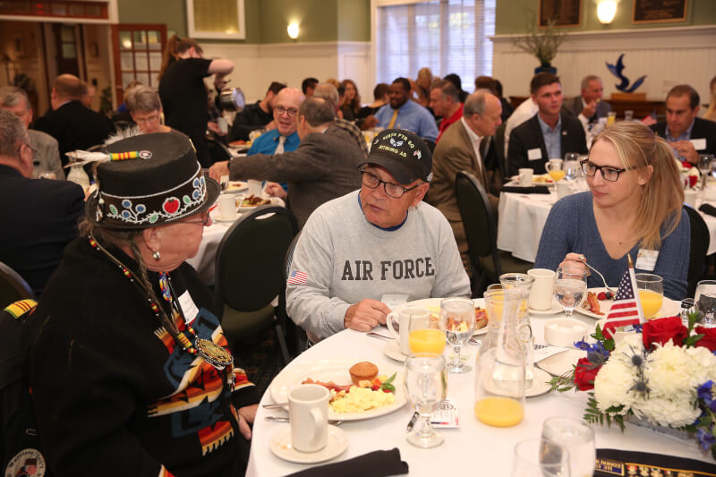 Grand Valley celebrated students, faculty and staff members who are veterans or active military members during the Veterans Day Breakfast November 10. The seventh annual event was hosted by President Thomas J. Haas, a retired captain in the U.S. Coast Guard.