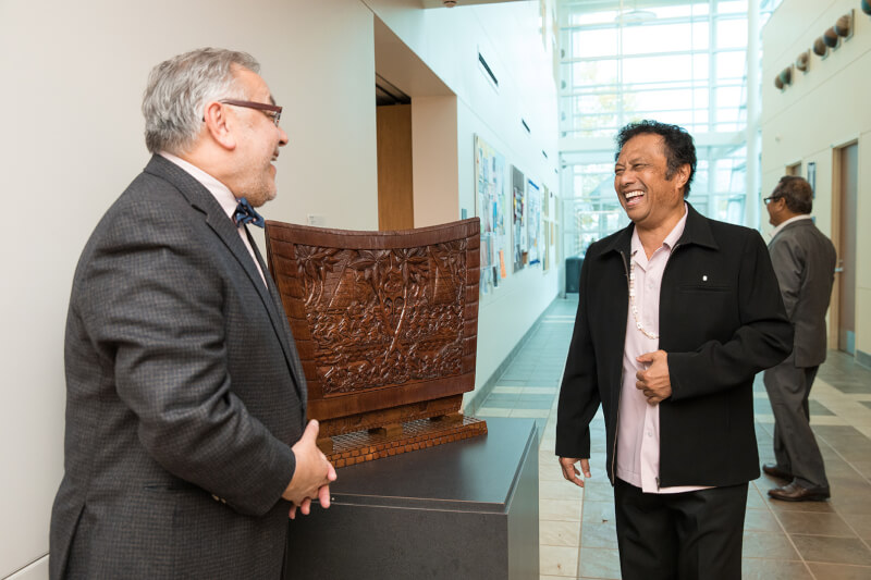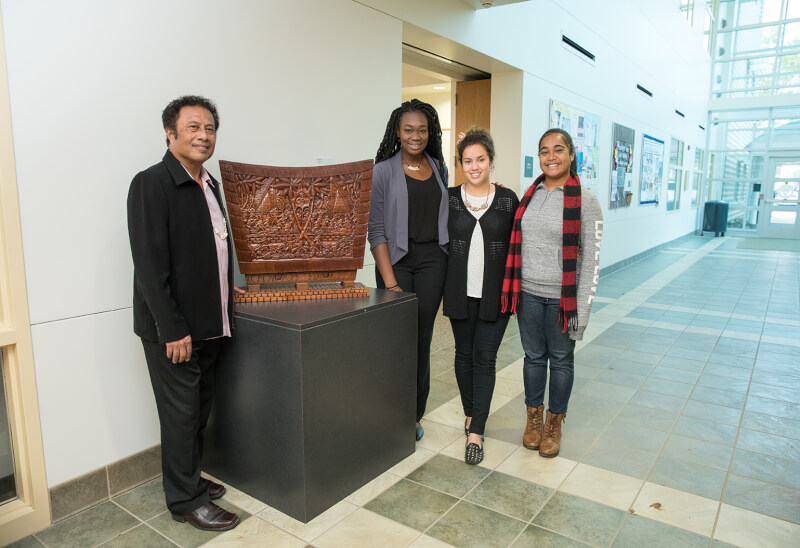 The students attended an event November 2, when a piece of artwork from Palau was dedicated to Remengesau in Lake Ontario Hall.
