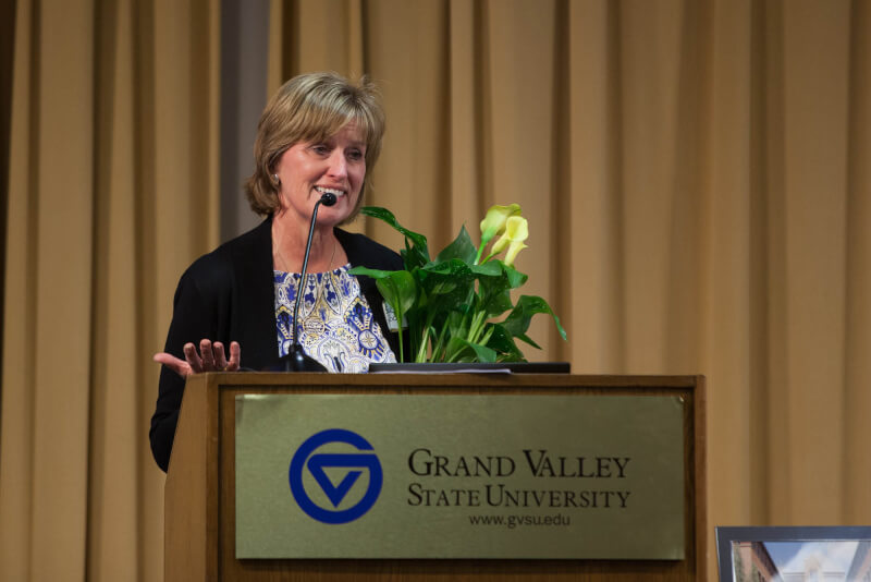 Provost Gayle R. Davis received the Lifetime Achievement Award from Grand Valley's Women's Commission at the annual Celebrating Women Awards ceremony March 30.