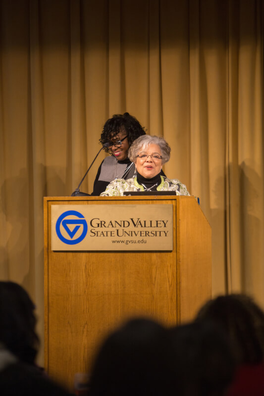Cassonya Carter, senior academic advisor for Kirkhof College of Nursing, presented Vanden Wyngaard with the award. Carter, who also directs the student gospel choir Voices of GVSU, called Vanden Wyngaard a mentor during the choir's formative years.