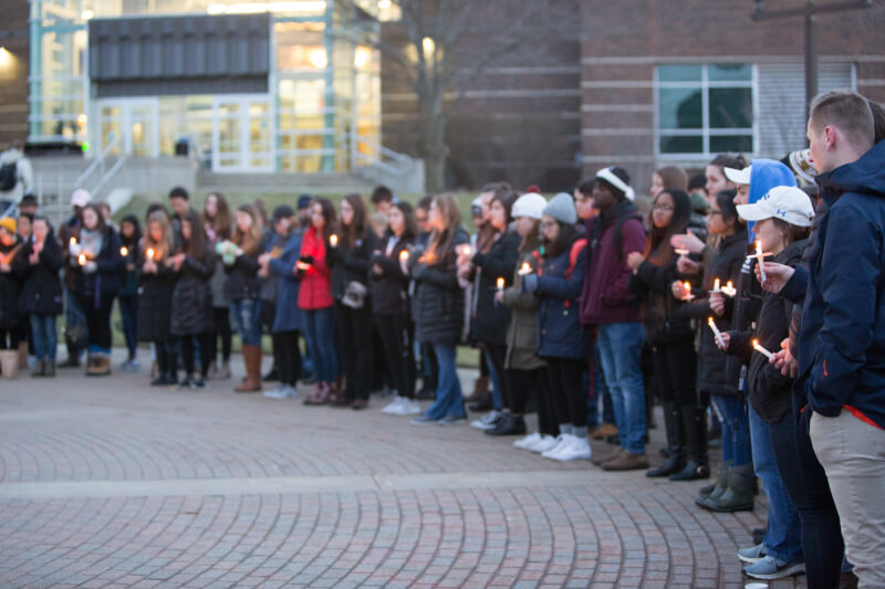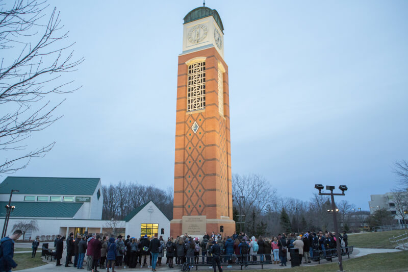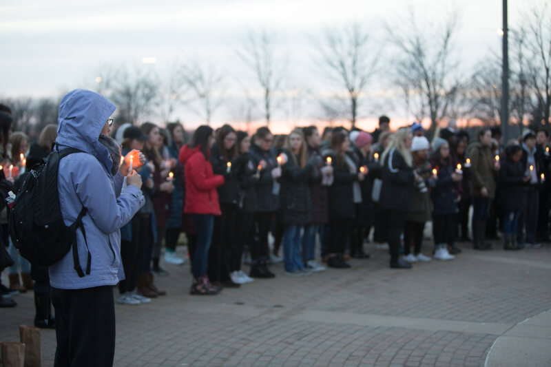 The group gathered at the Cook Carillon Tower on the Allendale Campus February 21 to take part in a candlelight vigil to honor the victims. During the vigil, organized by Student Senate, Bowman said while Grand Valley is a safe place, the shooting in Florida still hit close to home.