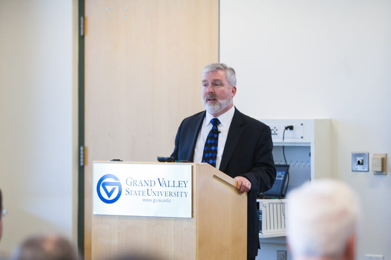 Gary Dickstein, interim vice president for Student Affairs at Wright State University in Dayton, Ohio, gave a public presentation and answered questions April 5 in the Kirkhof Center.