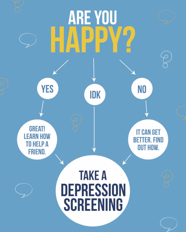 Students can complete a brief, confidential screening on campus, and will have the opportunity to meet with a counselor after to discuss results. Students who are not on campus can complete an online screening questionnaire at gvsu.edu/counsel.