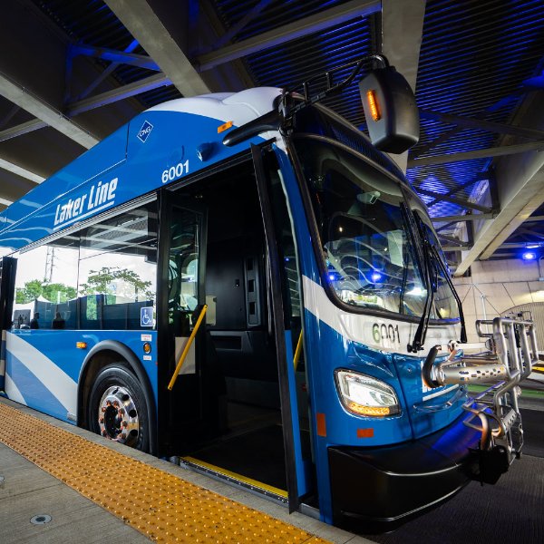 The Laker Line will run 16 larger, articulated buses that have seats for 60 passengers and can carry up to 80 to 90 people. These buses have dual boarding with wider doors for quicker boarding.
