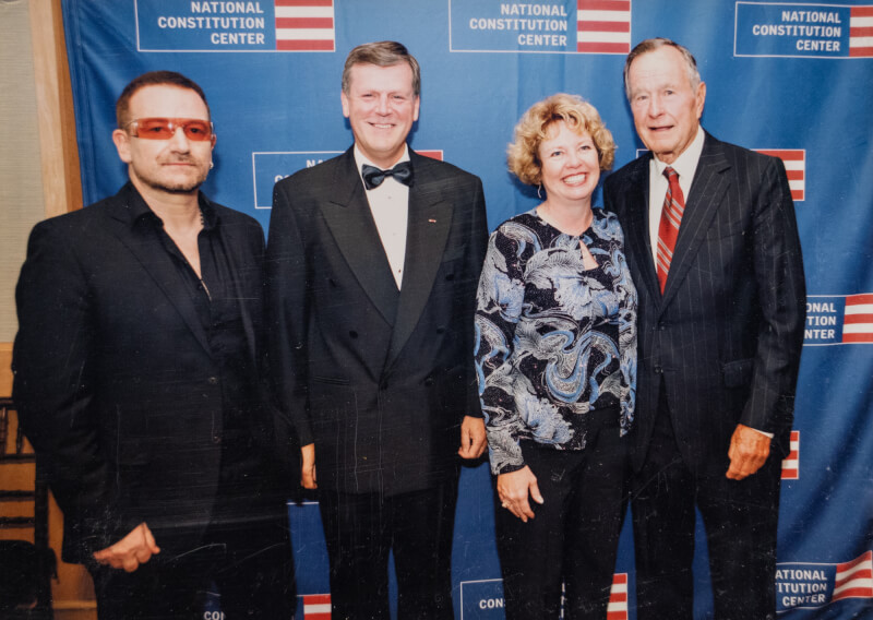 The Haases and the Bushes had one last meeting in 2010 when they gathered at the Constitution Center in Philadelphia to recognize singer Bono with the Liberty Medal.