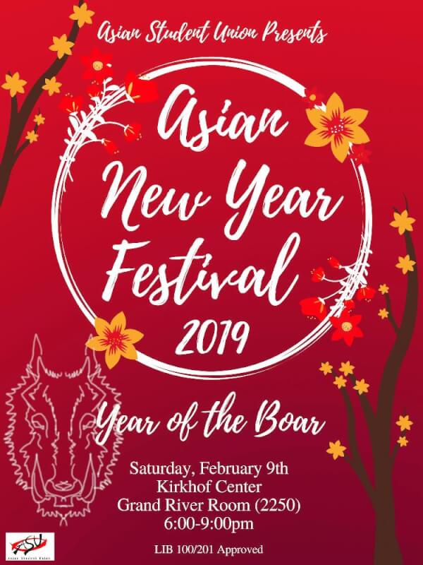Asian New Year Festival: Feb. 9 from 6-9 p.m. Kirkhof Center, Grand River Room