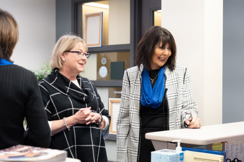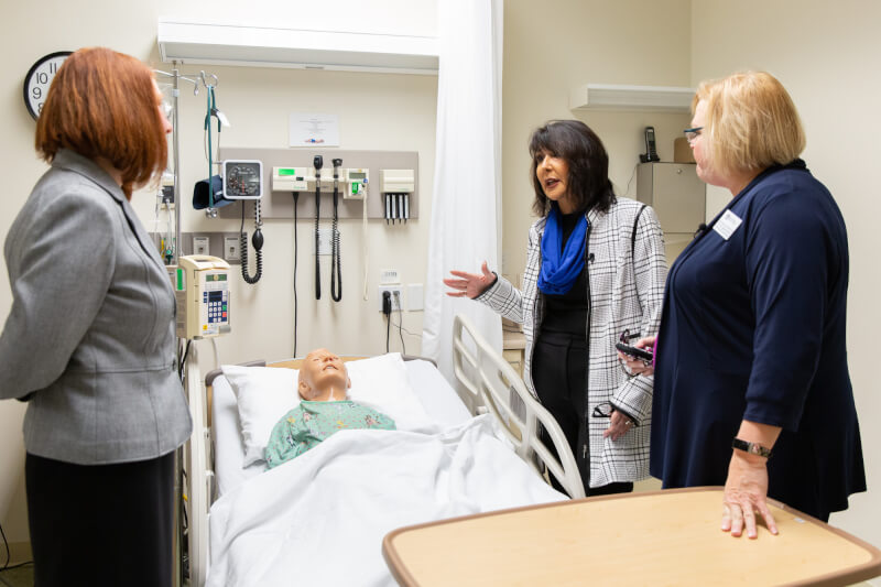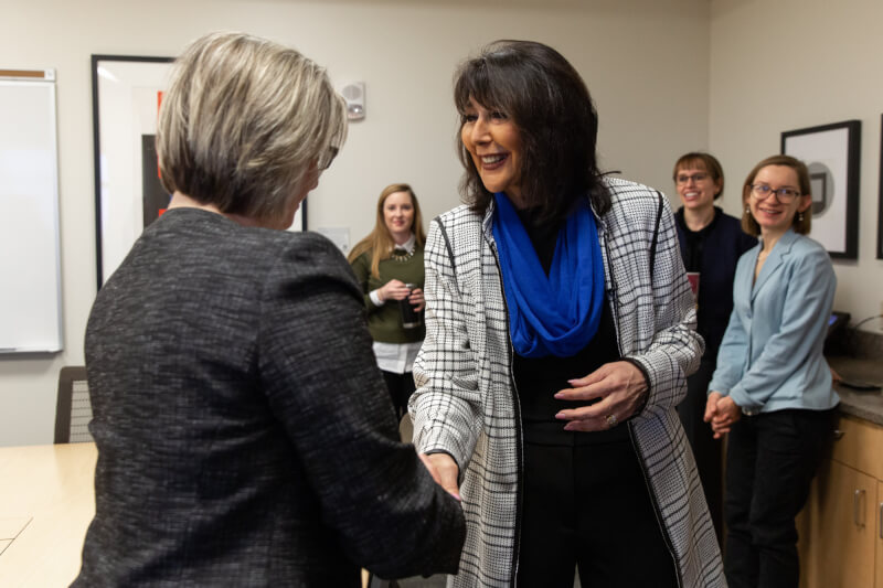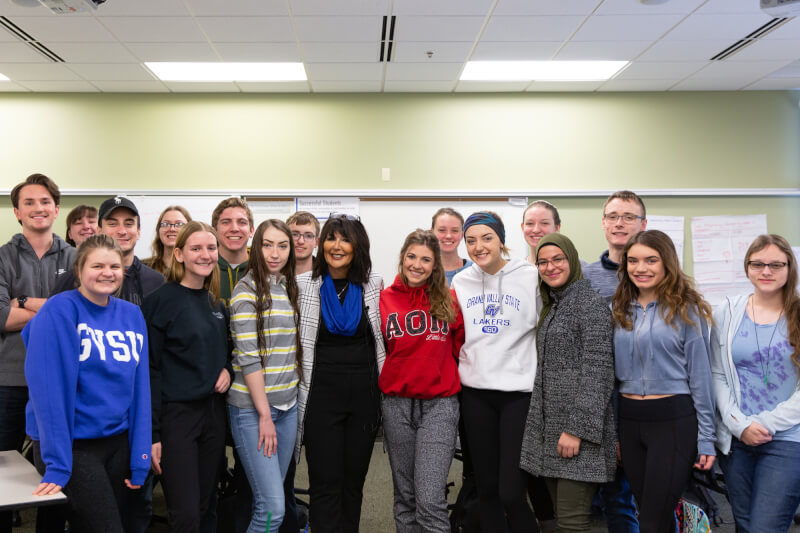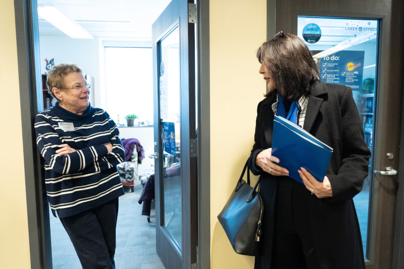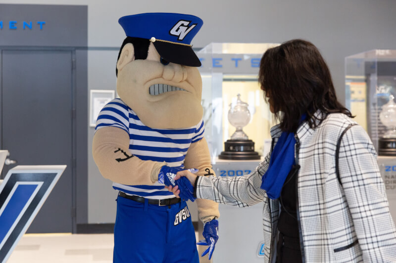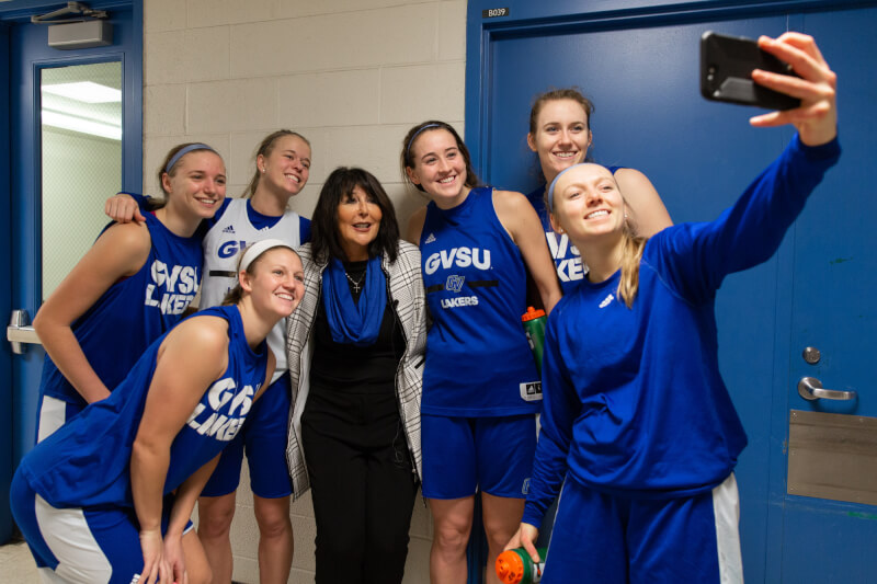 Tour stops included the Cook-DeVos Center for Health Sciences, University Development, John C. Kennedy Hall of Engineering, Disability Support Resources, the Fieldhouse, and various classrooms and administrative offices. She also met students while riding The Rapid campus connector and bought her first round of Laker gear in the Laker Store.