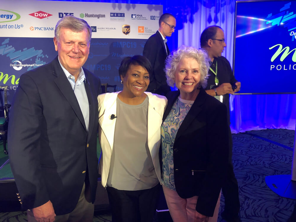 President Thomas J. Haas is meeting with policy leaders at the 2019 Detroit Regional Chamber's Mackinac Policy Conference being held at the Grand Hotel on Mackinac Island. Haas is joined by President-elect Philomena Mantella.