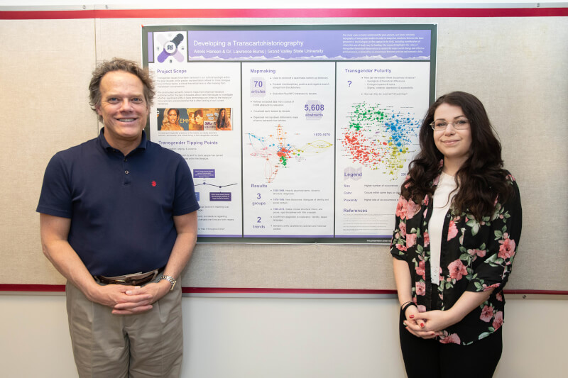 Hansen, who has minors in chemistry and LGBTQ studies, secured an independent research project with Lawrence Burns, professor of psychology. Their project focused on mapping transgender studies throughout history to examine relations between the trans perspective and other disciplines.