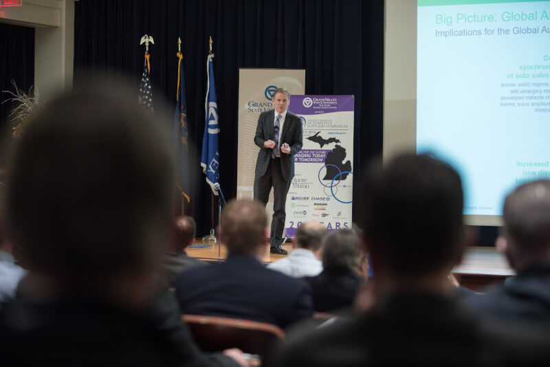 Grand Valley alumnus Mike Wall, '94, executive director of automotive analysis at IHS Markit, said trade and tariffs will continue to be a threat to the industry.