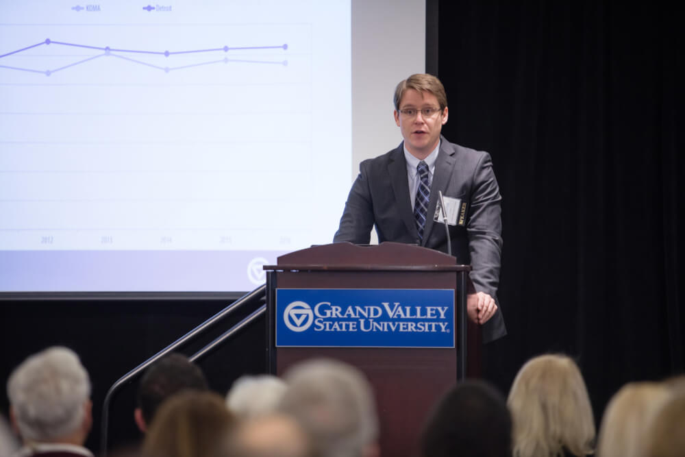 Sebastian Linde, assistant professor of economics, will detail the annual Health Check report, which analyzes health data and trends for Kent, Ottawa, Muskegon and Allegan (KOMA) counties and compares data to statewide and national figures.