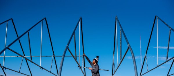 On November 16, members of GVSU's Farm Club joined volunteers from New City Neighbors and the SAP in installing a high-tunnel greenhouse on the farm. The produce grown in this space will feed those in need.