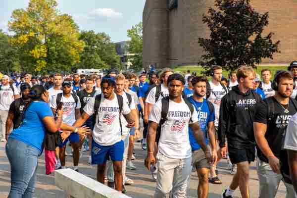 Before kickoff, Laker Vets — the Grand Valley chapter of Student Veterans of America — gathered for a tailgate to honor and thank those who served in the armed forces. Sitting at a table of friends, behavioral neuroscience major and Army veteran Nia Ford was in the fifth grade in 2001 and recollected how her teachers remained quiet and composed through the day.