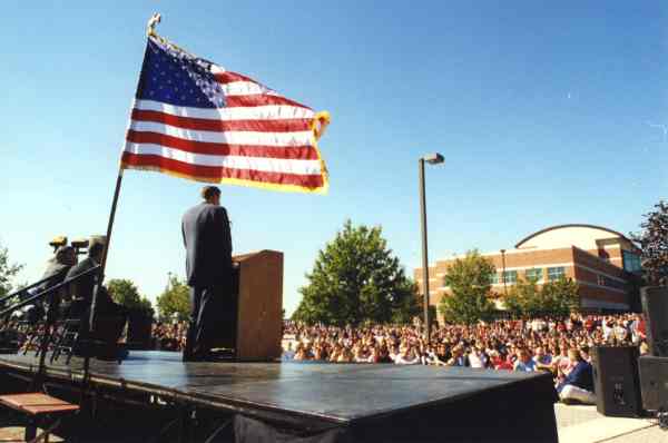 Twenty years ago, hundreds of GVSU students, faculty, staff and community members gathered around the Cook Carillon Tower on September 11 to listen to President Mark A. Murray speak after news broke about the terrorist attacks in New York and Pennsylvania and at the Pentagon.