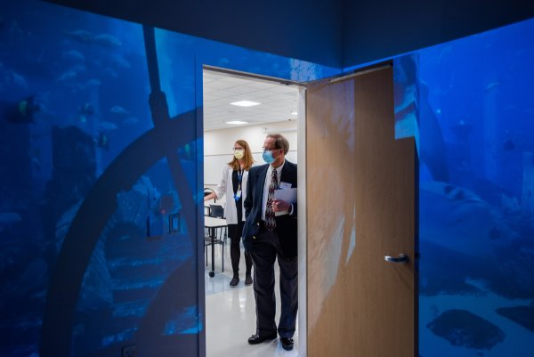 About 400 community members and donors attended the November 3 event to celebrate and tour DCIH, which opened in May on Grand Valley’s Health Campus on Medical Mile in downtown Grand Rapids.