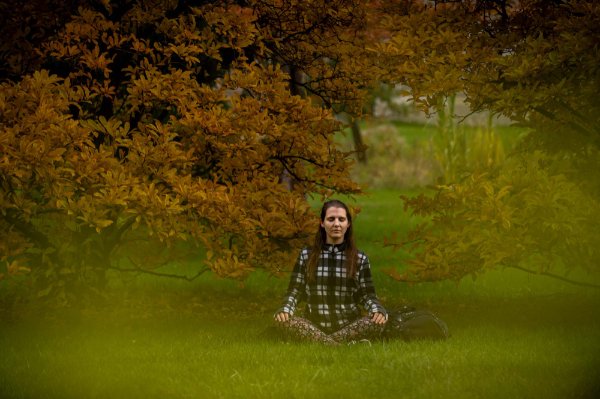 Student Alena Kupres meditates in the Arboretum on Nov. 10. Kupres, a senior studying Spanish and ESL education, said she started mediating in the beginning of the pandemic.