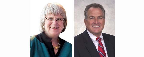Former board members Mary Kramer and John Russell were recognized for their years of service to Grand Valley.
