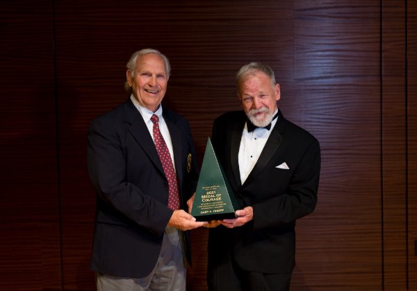 John Harris III, a teammate of Chopp's, is a board member for the National Wrestling Hall of Fame and nominated Chopp for the medal of courage.