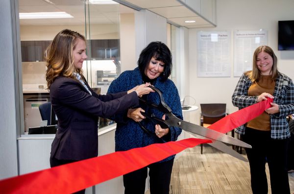 Leaders at Grand Valley and Trinity Health Medical Group celebrated their expanded partnership during a ribbon-cutting ceremony September 27 at the Campus Health Center.