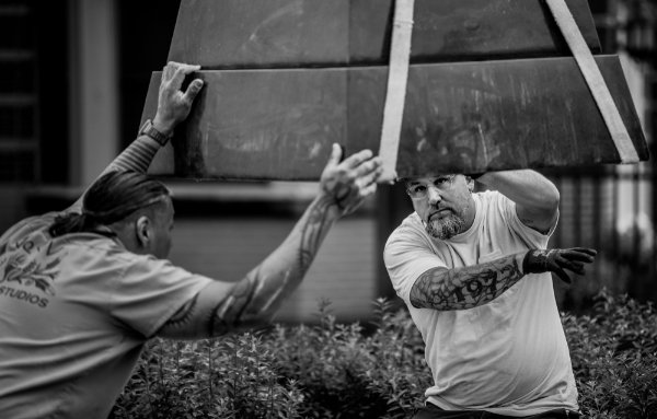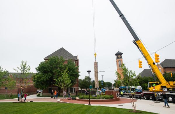 It was installed on the Mount Vernon pedestrian pathway as the culmination of the original plan for a sculpture to be placed at the north end of the pathway next to Fulton Street, said Nathan Kemler, GVSU director of Galleries and Collections.
