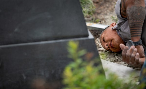Akii Ndodem (Earth Totem) is a carved Anishinaabek limestone sculpture created by Jason Quigno, a local Anishinaabe artist.