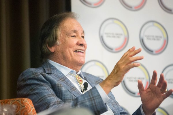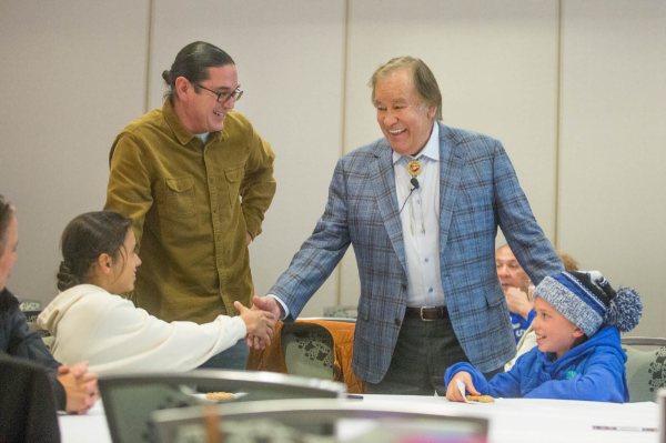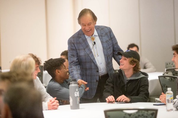 Before and after his presentation, Mills took time to meet with attendees, including first-year student Bahozhoni Church, whose track and field accomplishments had people in his hometown of Albuquerque, New Mexico, referring to him as "the next Billy Mills." Church’s family even traveled from New Mexico to hear Mills speak.