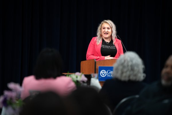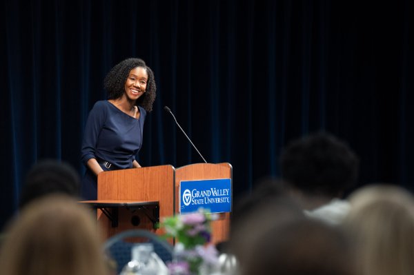 Bolden, '10, told a Grand Valley audience she recalled one elementary school visit when a Black girl asked her if girls can go to college. Bolden assured the young girl that college is, indeed, for girls and, in fact, she herself was a college student.
