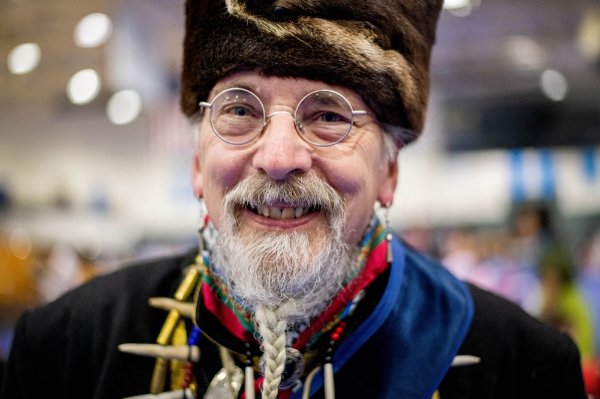 head veteran of the pow wow and a member of the Sault Ste. Marie Tribe.