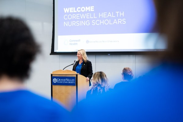 Martinez and nearly 30 other students were celebrated as the inaugural cohort of Corewell Health Nurse Scholars during a reception April 10 at the DeVos Center for Interprofessional Health on GVSU's Health Campus.