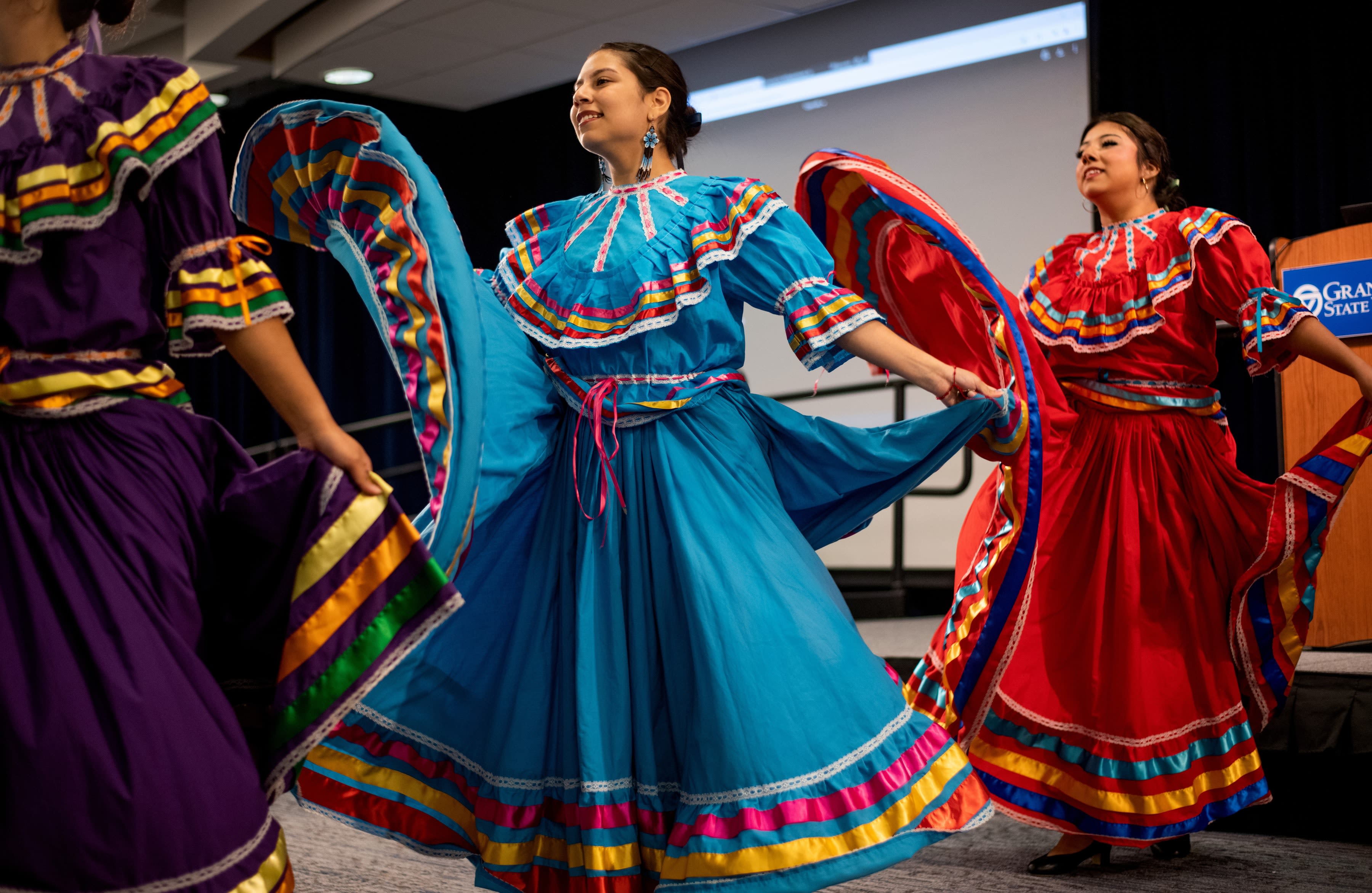 Dancers with the student organization Monarcas perform traditional Mexican folkloric dances during the Laker Familia Kickoff.