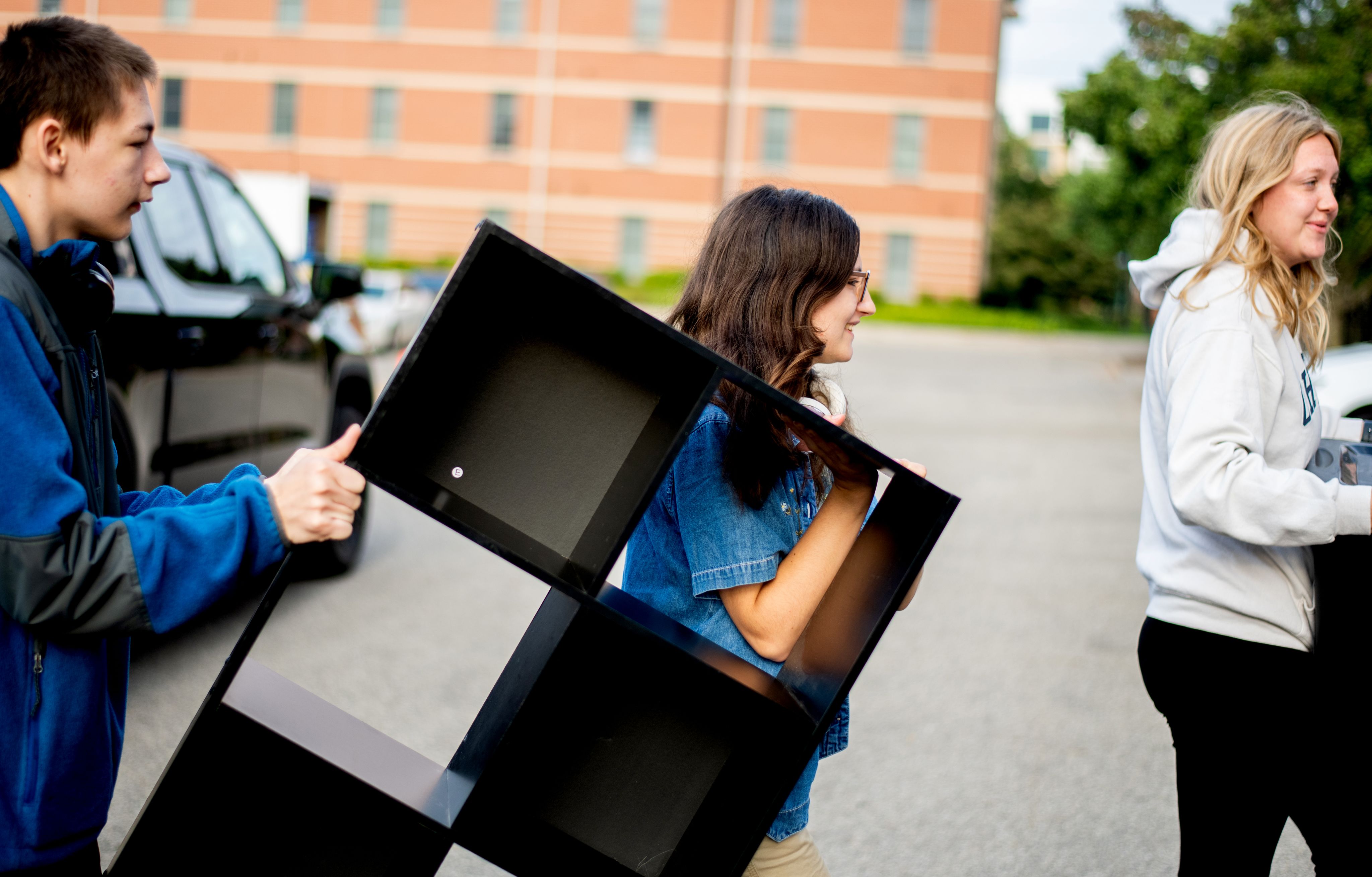 Madison Parrinello, center, gets help moving in her belongings from her younger brother and her roommate.