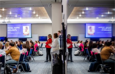 A visiting college tour presented by Amazon Web Services stopped at Grand Valley on April 1 and highlighted the opportunities for women in the fields of computer science, cybersecurity, artificial intelligence and information technology.