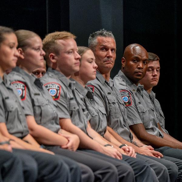 Amid the excitement of GVSU's move-in week, 32 recruits — which included four military veterans — their instructors and families packed the Louis Armstrong Theatre in the Haas Center for Performing Arts on the Valley Campus in Allendale to celebrate the completion of the 17-week program.