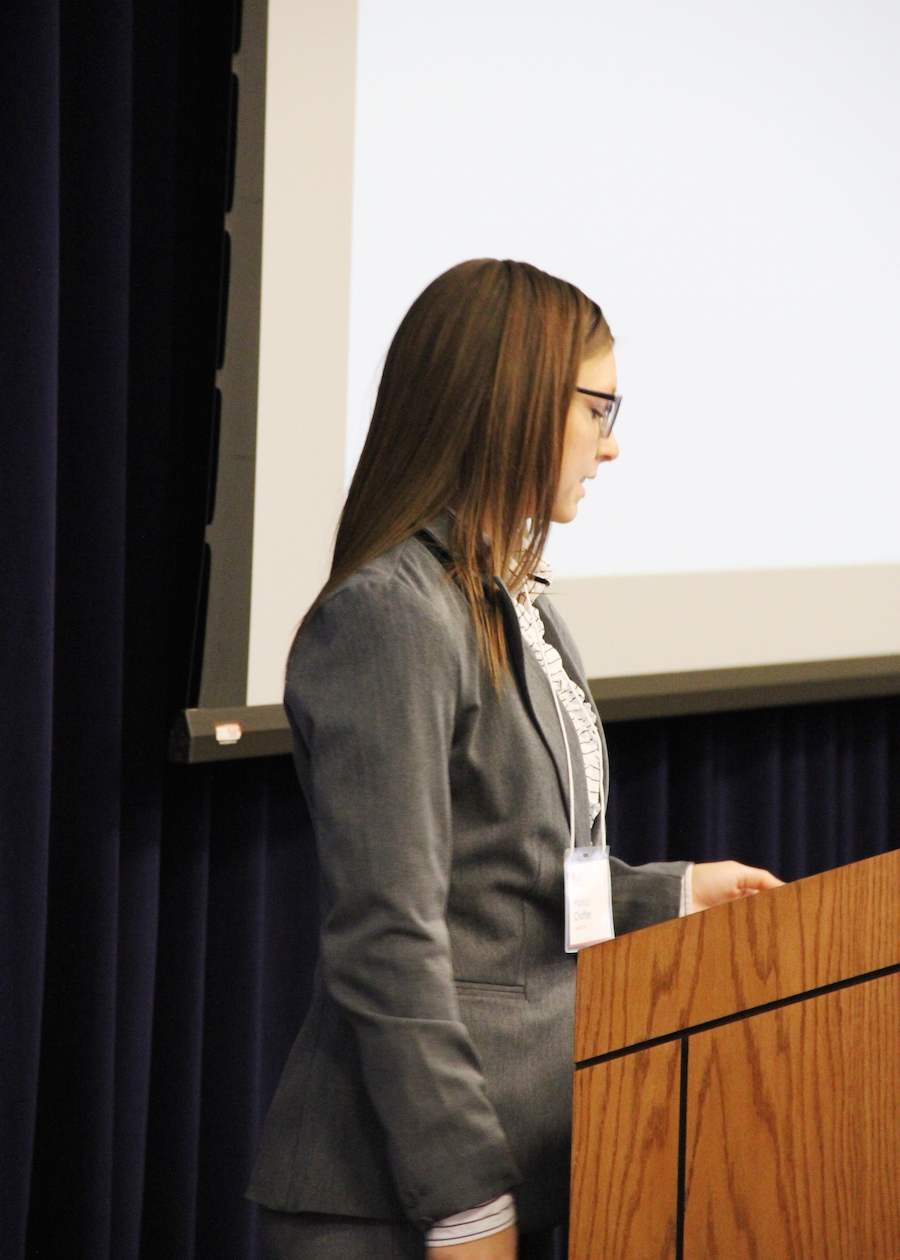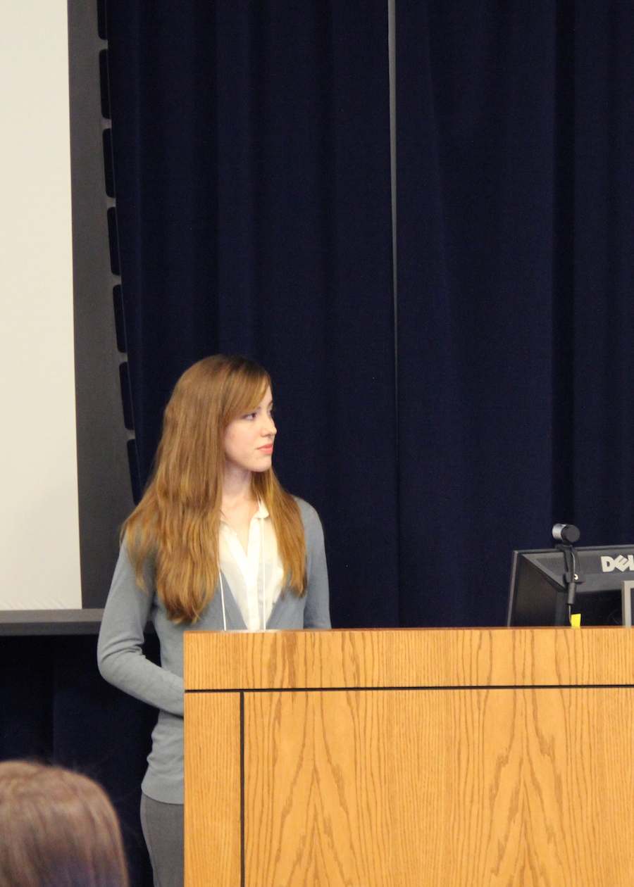 Monica Chaffee presenting her team's pitch "Hawk Light Crossing."