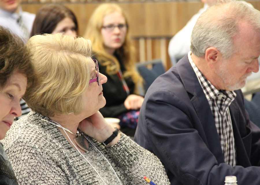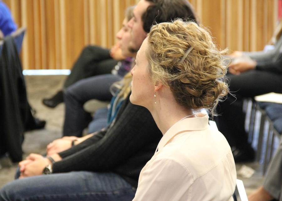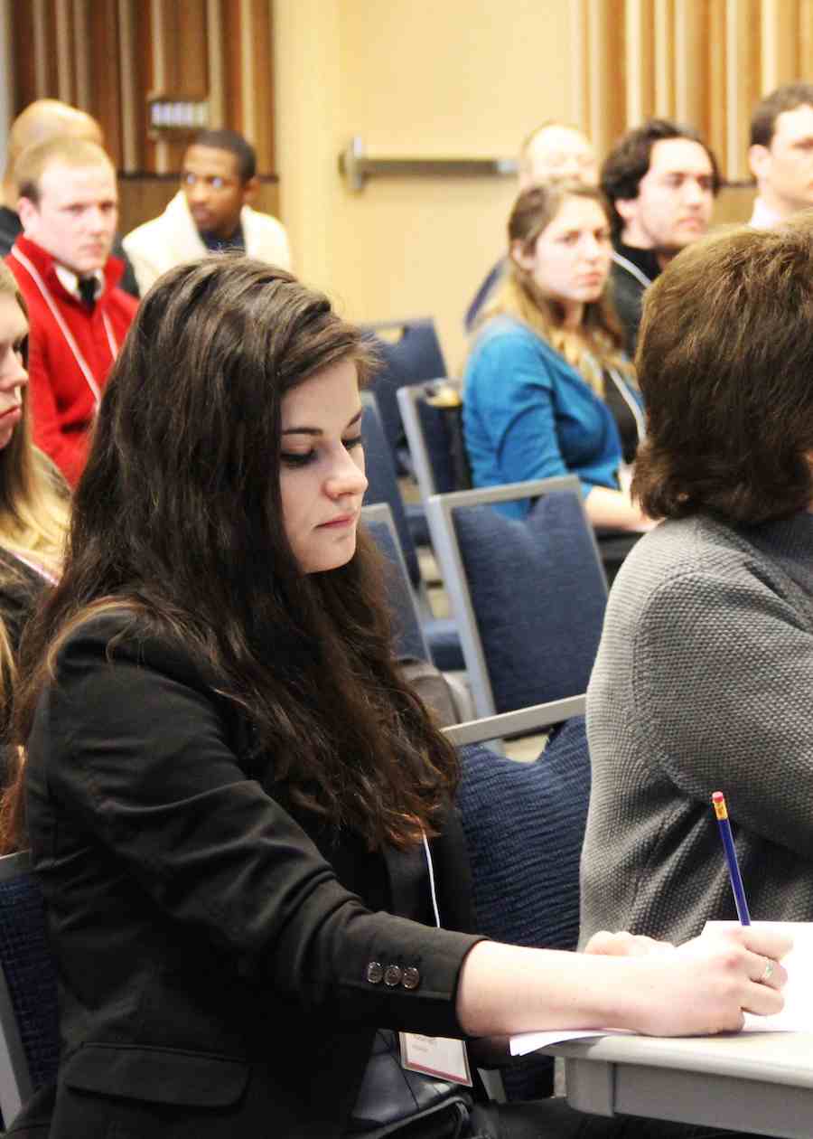 Lindsay Noonan, one of the final-round judges, takes notes during the final-round pitching.